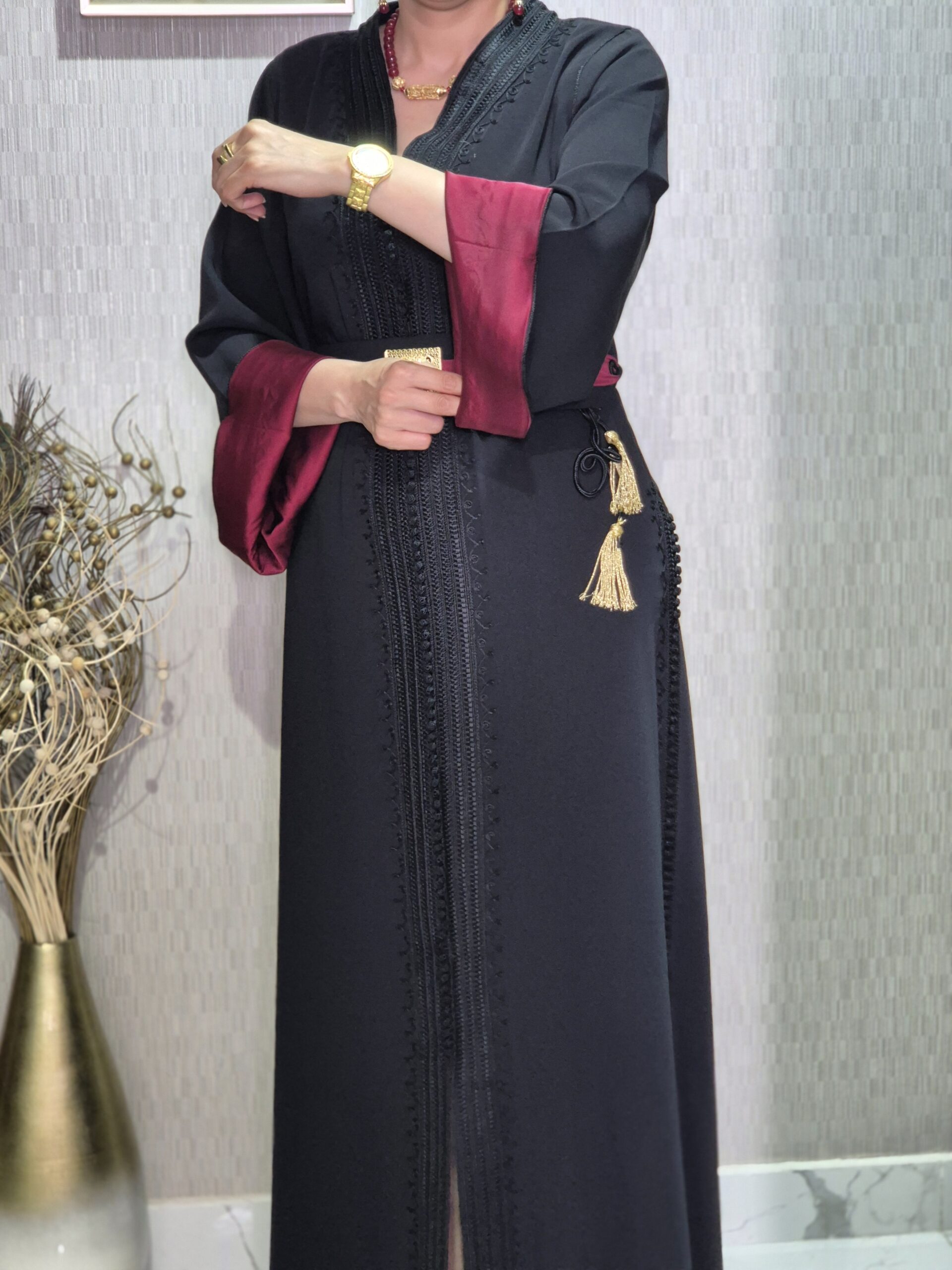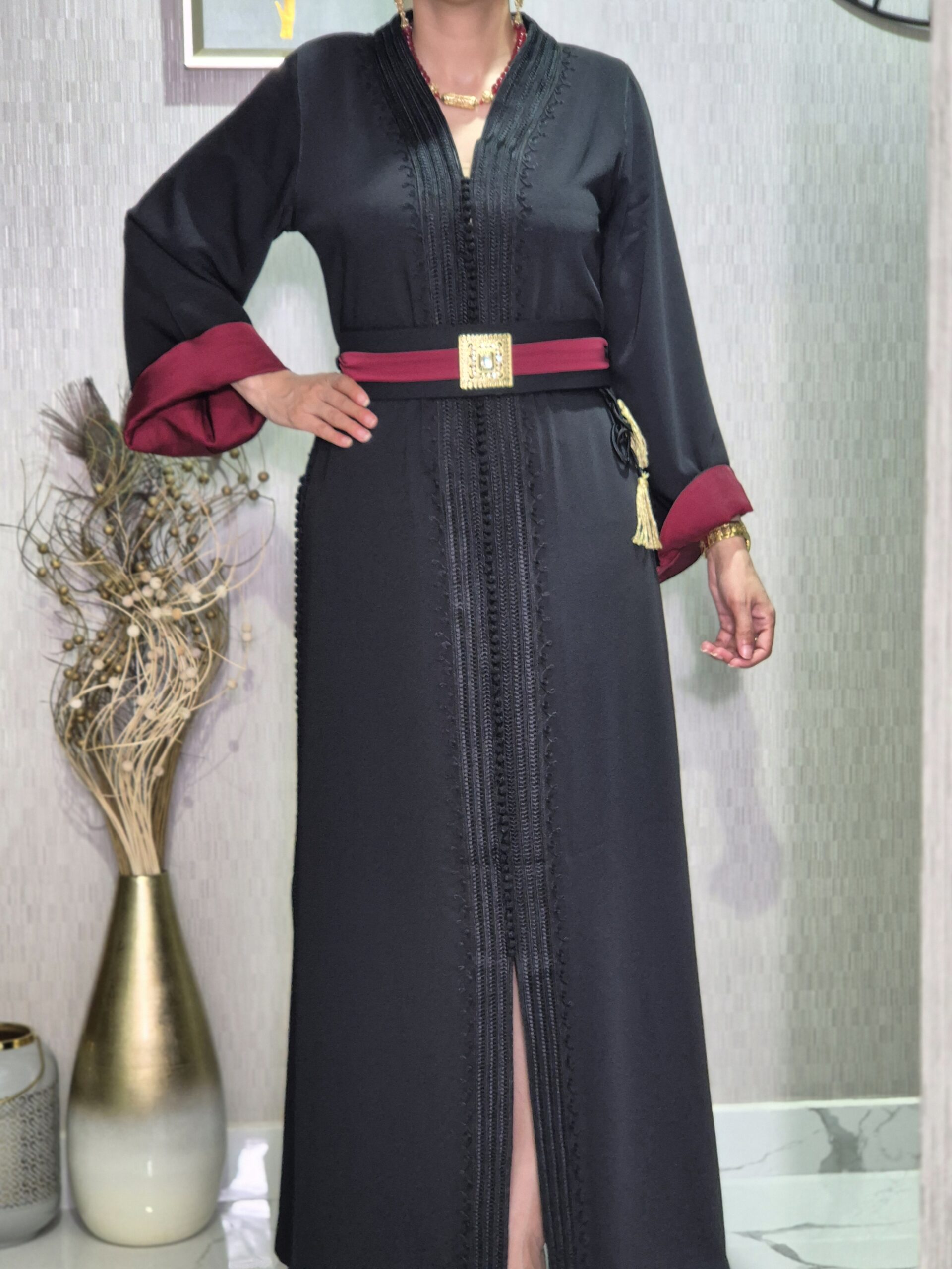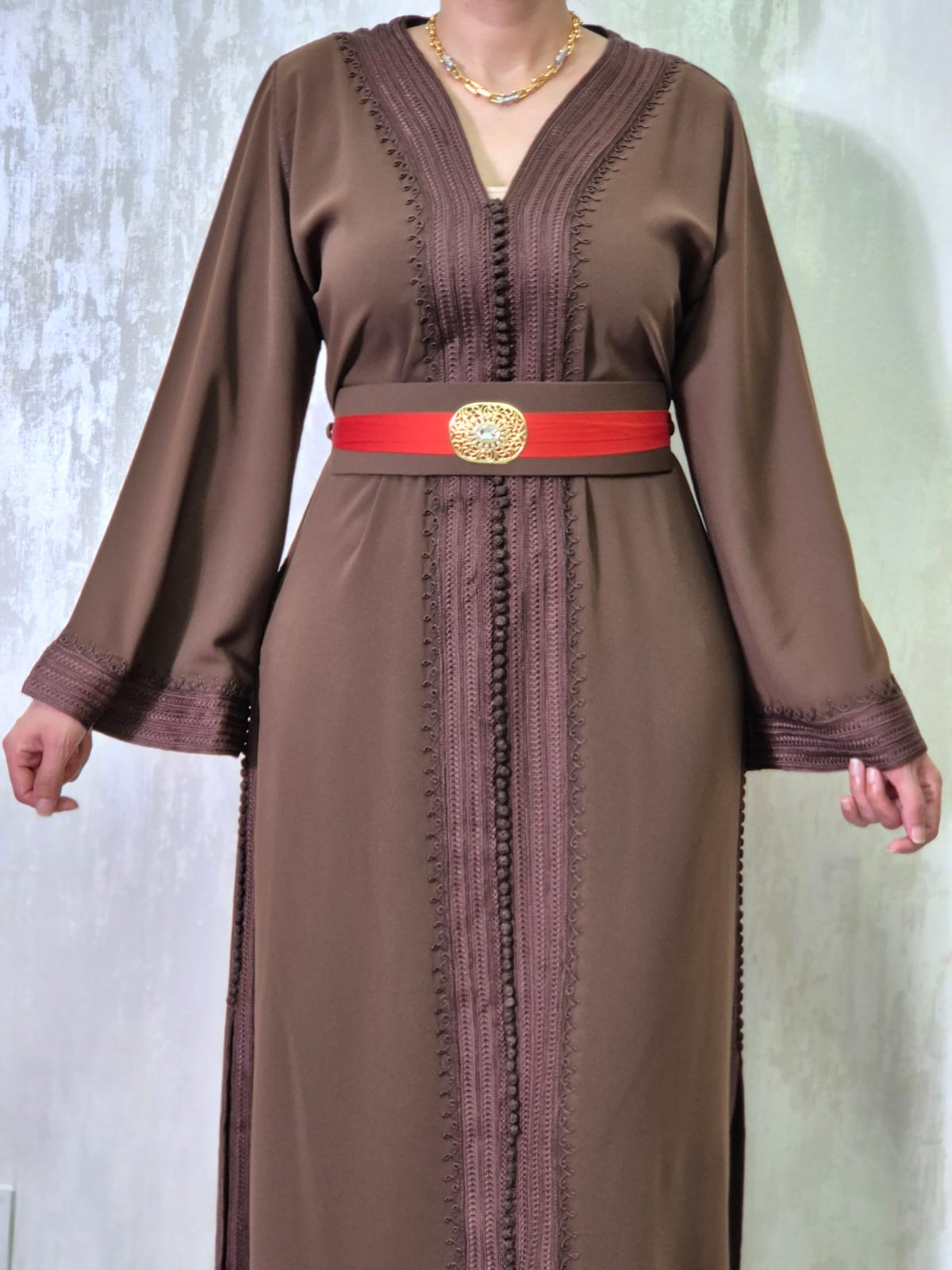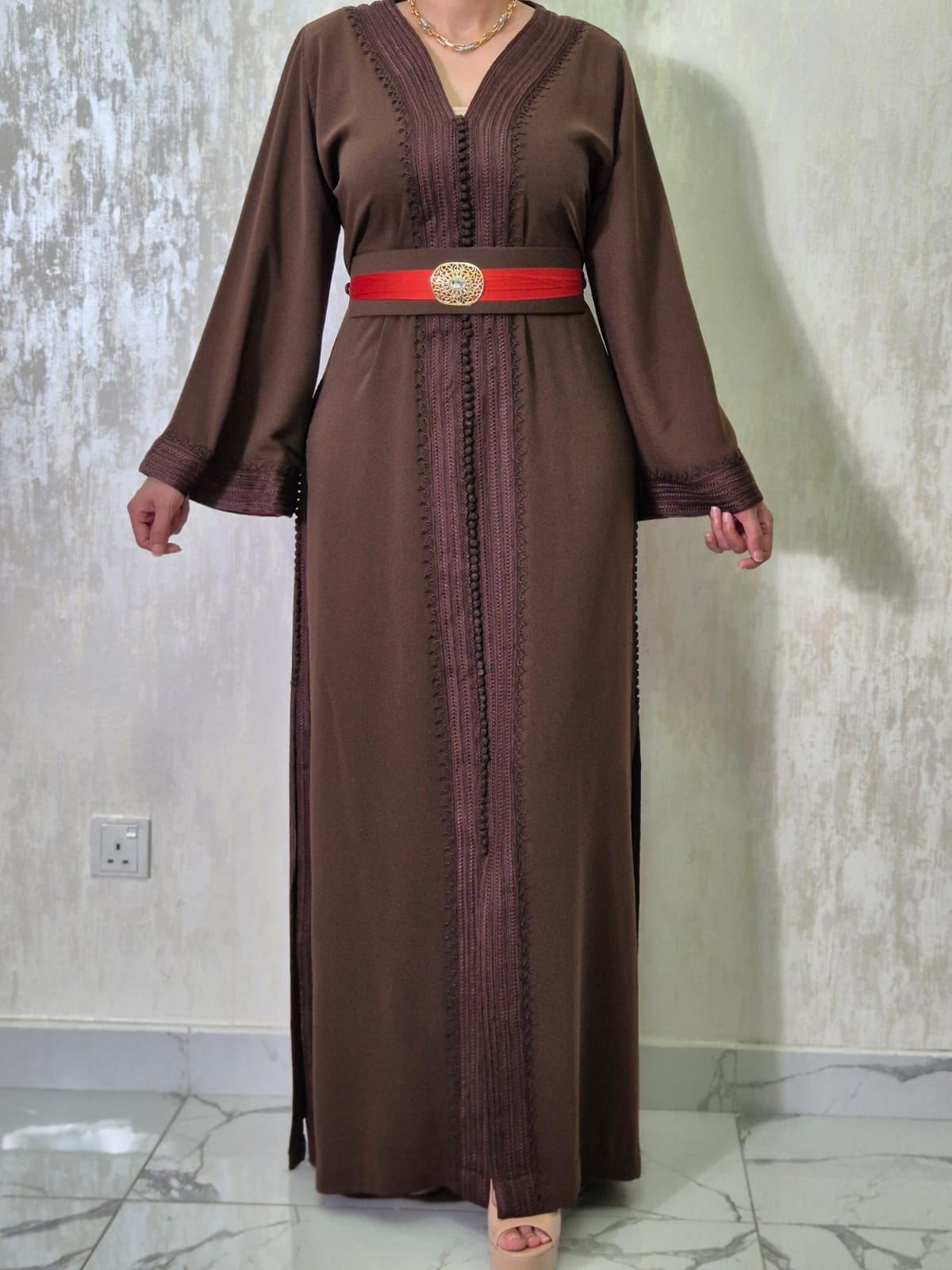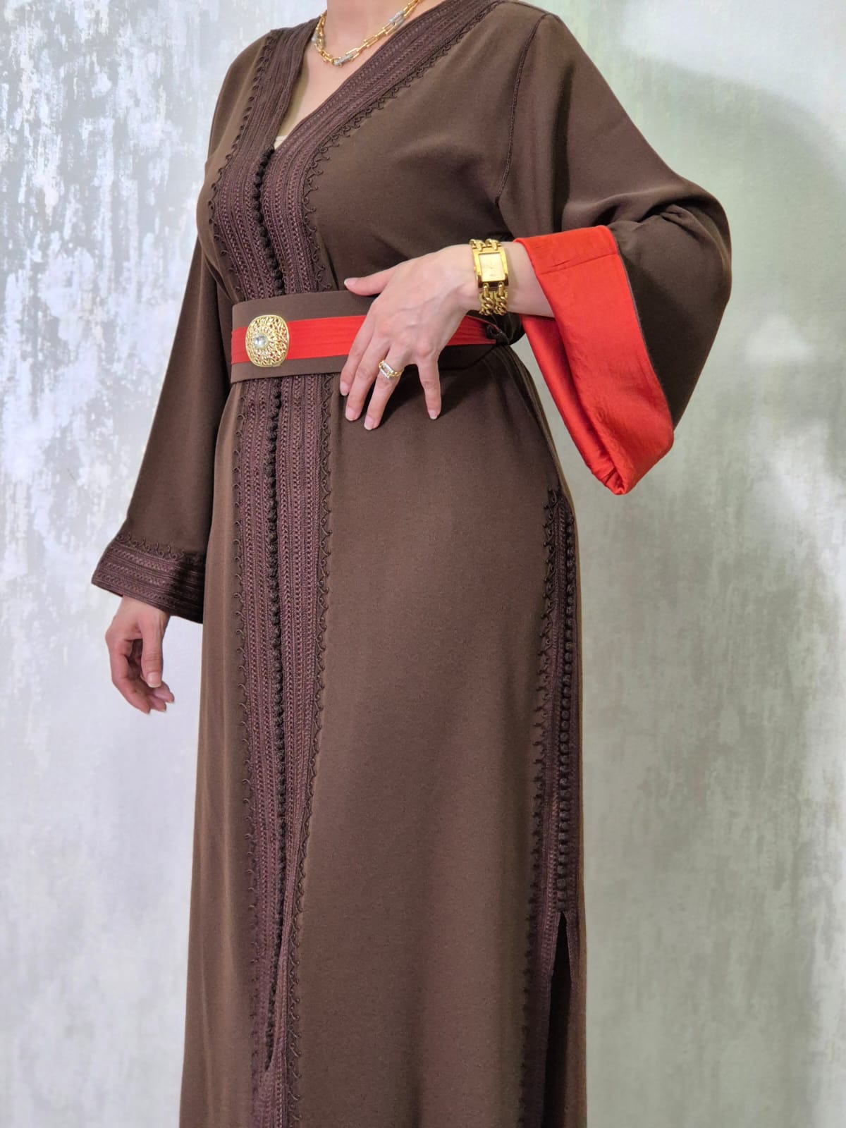 - A caftan made of silk crepe is a great choice of style and comfort, as it combines the lightness and fluidity provided by silk and the unique design offered by crepe. Sewing a caftan in the same color adds a touch of harmony and beauty, making it suitable for special occasions or family gatherings. As for the padded sleeves, they add a dimension of luxury and delicate details that show the craftsmanship of tailoring and design art. This caftan can be worn with simple accessories to highlight its natural beauty, and it suits different tastes thanks to its variety in design and colors.